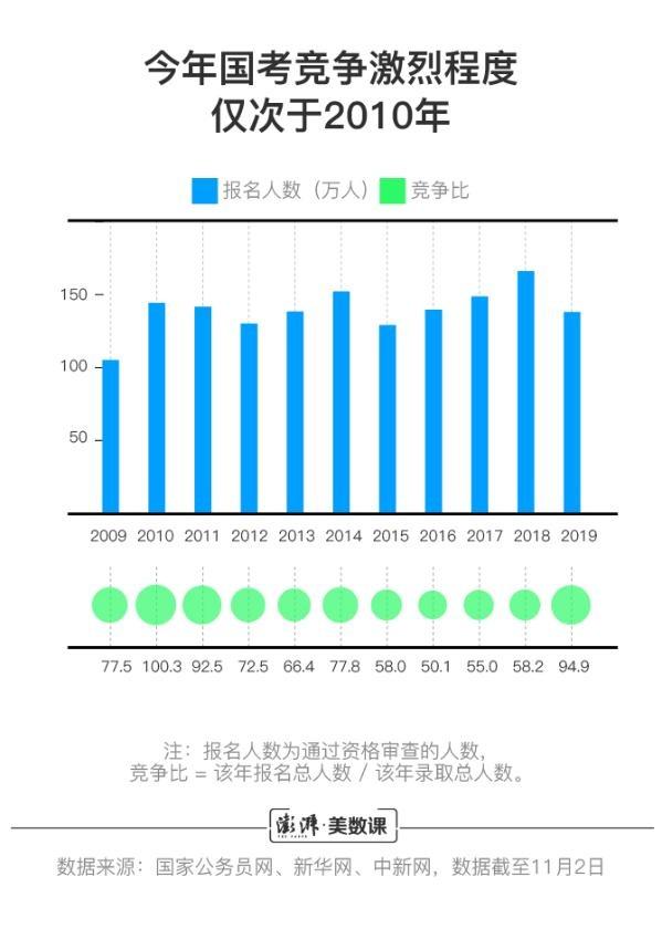2019國家公務(wù)員考試的公共科目筆試,于12月2日在全國各地考點(diǎn)正式舉行。今年,共有137.93萬人通過了公務(wù)員考試的報(bào)名與審查,他們將競爭9657個(gè)崗位。其中過審報(bào)名人數(shù)與計(jì)劃錄用人數(shù)之比約為95:1。這就意味著,從平均水平來講,每個(gè)崗位都幾乎是“百里挑一”;這樣的競爭激烈程度,幾乎比去年高出一倍(58:1),在近十年中僅次于2010年(100:1)。多級泵