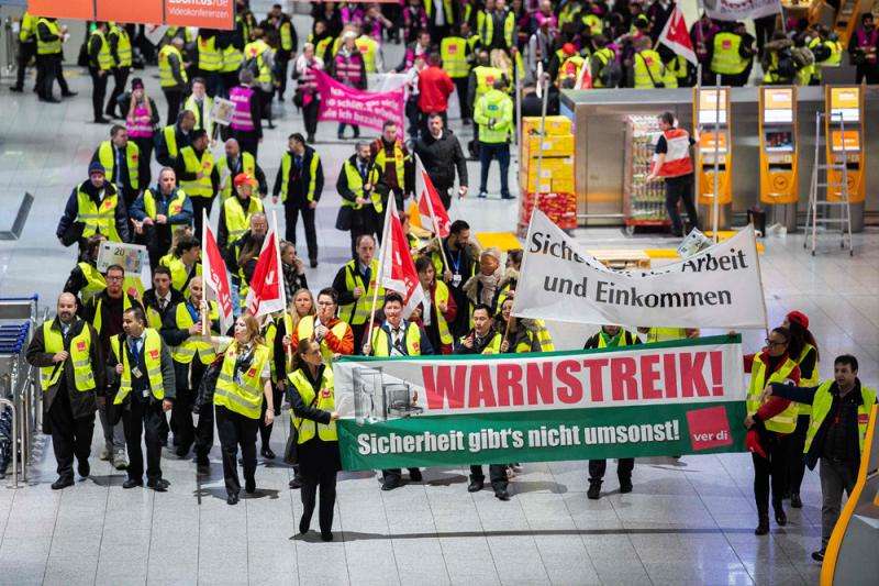 當(dāng)天早間,在德國服務(wù)行業(yè)工會(ver.di)呼吁下,上述三大機(jī)場共有近1千名安檢公司雇員參與了此次罷工。該工會當(dāng)天表示,罷工的目的是要求資方滿足為安檢人員漲薪的訴求。