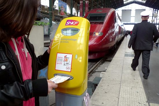 法國國營鐵路公司首先會及時了解當(dāng)?shù)氐男枨螅谠囆写髤^(qū)內(nèi)確定授權(quán)售票的煙草店。屆時,授權(quán)店內(nèi)將配置新型的售票設(shè)備,通過平板電腦上或手機(jī)的應(yīng)用程序打印車票。