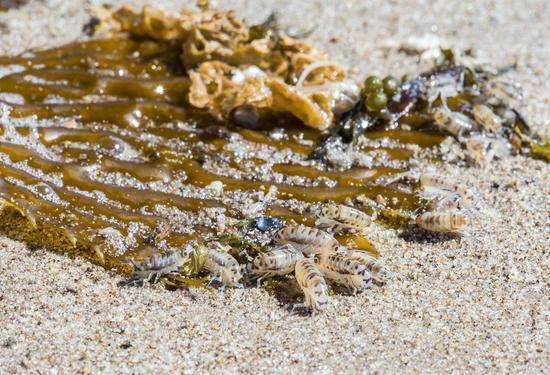 在距離海水稍遠(yuǎn)的海灘生活著沙蚤,它們的食物是沖積到海岸上的海藻團(tuán),美國(guó)加州大學(xué)圣巴巴拉分校海岸海洋生態(tài)學(xué)家珍妮·杜根(Jenny Dugan)說(shuō):“不要將它們認(rèn)為是‘海灘上的跳蚤’,因?yàn)樗鼈儾粫?huì)像跳蚤一樣對(duì)你的寵物吸血?!?a href="http://www.duoshou001.com/pwb/">排污泵