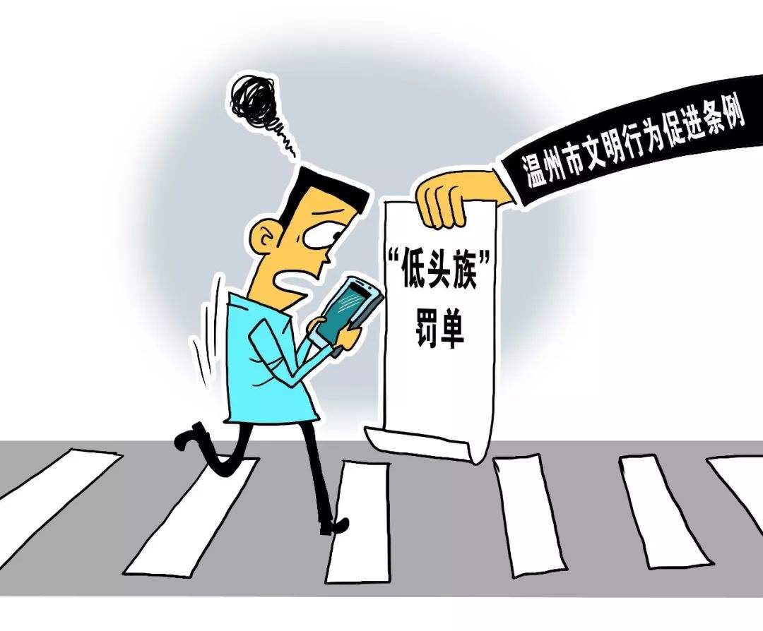 據(jù)報道,溫州市在2019年元旦開始實施的《溫州市文明行為促進條例》,明確規(guī)定,對于行人通過路口或者橫穿道路時低頭看手機、嬉戲等行為要重點整治,違反該規(guī)定的會受到警告或十元罰款。