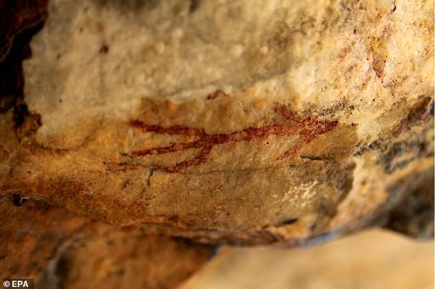 據(jù)西班牙媒體報道,這些洞穴壁畫圖案大約10厘米長,其中包括一些擬人化圖案,還有一個箭頭和其他符號。據(jù)了解,神秘洞穴壁畫是當(dāng)?shù)貧v史學(xué)家奧古斯丁·帕羅莫(Agustin Palomo)在探索“多爾蒙”石架墓穴時意外發(fā)現(xiàn)的。