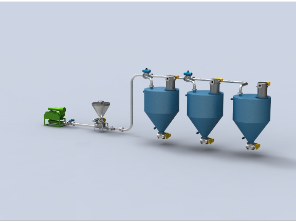 氣力輸送管道有單管輸送、雙管輸送和雙套管輸送,單管輸送主要用于稀相輸送,雙管及雙套管可以實現(xiàn)密相輸送,并且雙套管輸送多用于飛灰輸送。