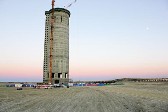 由于尿素造粒塔造粒工藝需求,其塔頂高度普遍 較高,部分塔頂除塵裝置排放口距地面超過100m,且由于塔形結(jié)構(gòu),其頂部平臺(tái)空間小,檢修不便、風(fēng) 力載荷大。造粒工藝?yán)鋮s風(fēng)量較大,其每1萬t的年產(chǎn)能,對(duì)應(yīng)冷卻煙氣風(fēng)量為1.5萬~ 2.0萬m3/h。一 座40萬t/a規(guī)模的尿素造粒塔高溫天氣下冷卻風(fēng)量達(dá) 到80萬m3/h,較端高溫高濕情況下其冷卻風(fēng)量還可能更高。