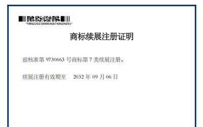 中成泵業(yè)cnsp商標(biāo)續(xù)展注冊(cè)證明
