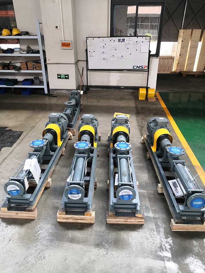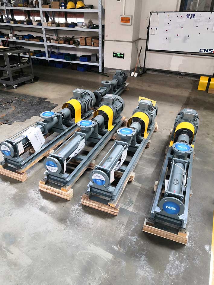河南某工程技術(shù)有限公司是鄭州市高新區(qū)企業(yè),專業(yè)從事礦山機械和工業(yè)選礦設(shè)備研發(fā)與制造加工的企業(yè),近日已工程需要在我廠采購一批單螺桿泵,型號為G50-2,泵為不銹鋼材質(zhì),用于輸送污泥。部分參數(shù)供選型參考:流量20m3/h壓力1.2 MPa功率7.5kw ?進口100mm?出口80mm,生產(chǎn)檢驗完工已交付客戶使用。