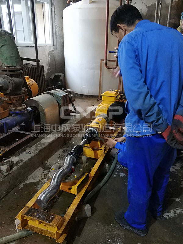 中成泵業(yè)技術(shù)工程師首先為客戶演示了螺桿泵的正確拆機(jī)順序,并進(jìn)行現(xiàn)場指導(dǎo),確??蛻裟軌蜃灾鬟M(jìn)行操作和使用,同時還對現(xiàn)場的機(jī)器進(jìn)行調(diào)試。因為客戶購買的螺桿泵使用時間較長,導(dǎo)致易損件——定子磨損,在中成泵業(yè)技術(shù)工程師的建議下,更換定子之后機(jī)器成功啟動并正常運(yùn)行。